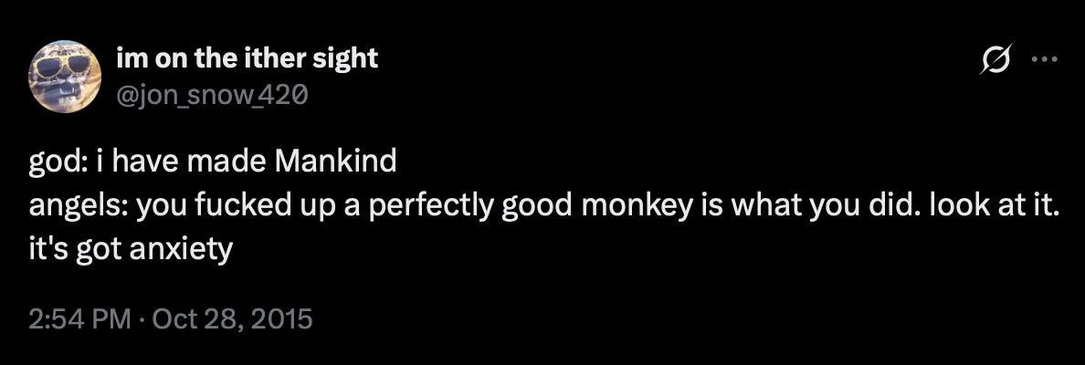 The Pitt. I’m late to this party, mostly because Bear was uninterested in watching this with me. As a surgeon who has worked in Pittsburgh hospital, he said the last thing he wants to do is come home from work to watch more work.1 Fair. This show is indeed very good, although I’m sort of at a loss as to describe why. I’m personally not all that interested in realism in drama—I would rather watch a documentary—but I think it’s the immersion that makes The Pitt so riveting. Our healthcare system is fucked, and experiencing that through characters instead of learning about it from a more dispassionate distance is incredibly effective. Fuck capitalism.
